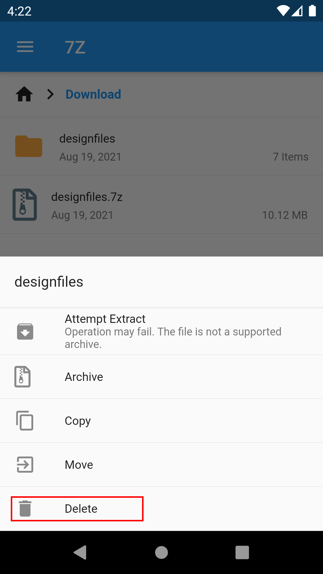 4. Once the file or the folder has been selected, tap the menu button at the bottom center of the page.