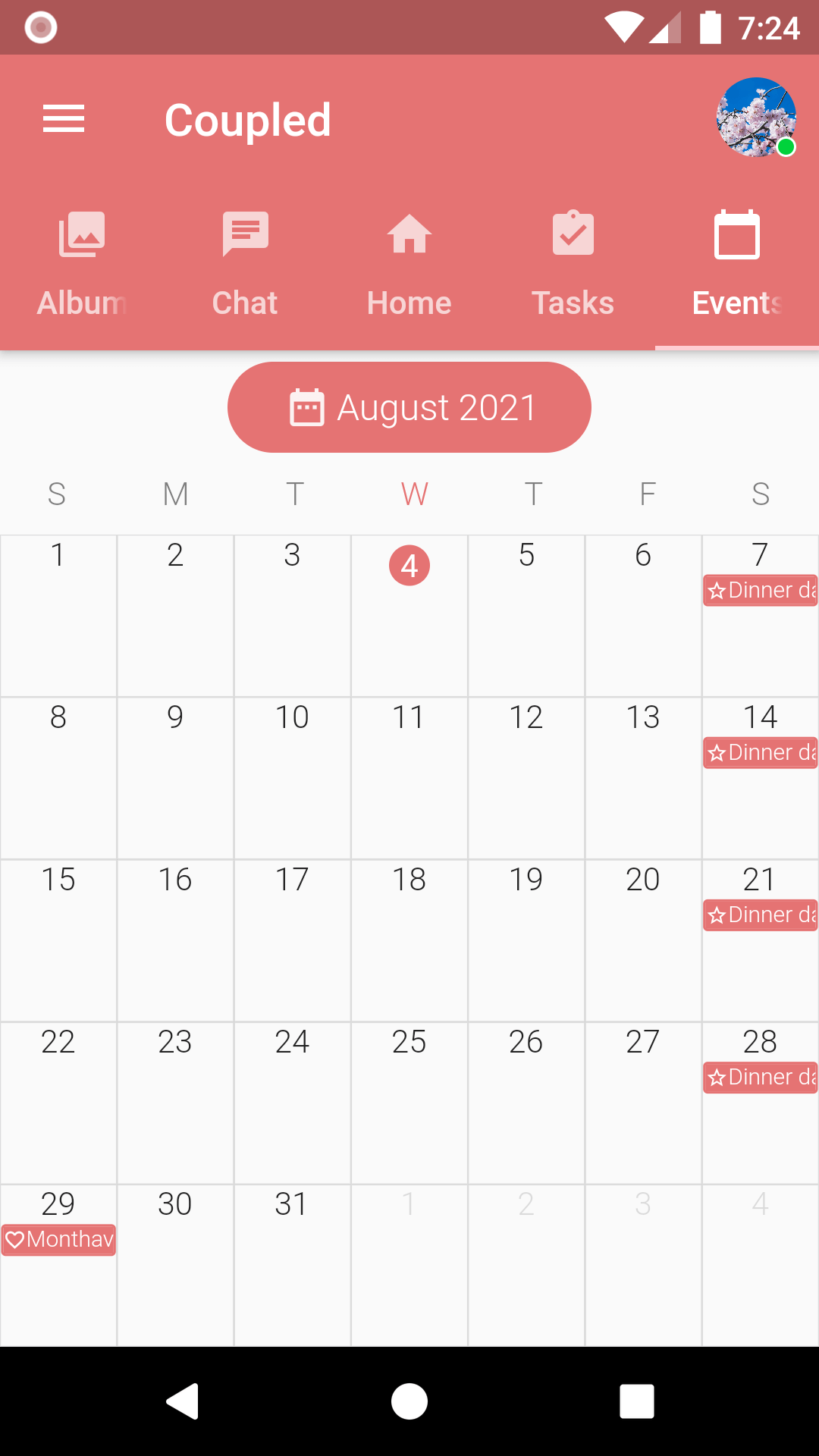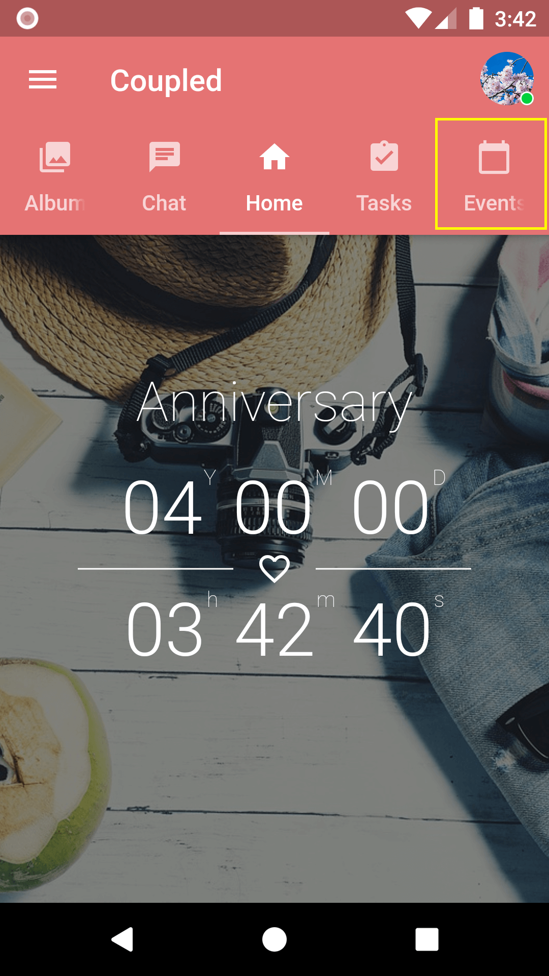 1. Tap the Events tab or slide the Coupled screen to go to Events.