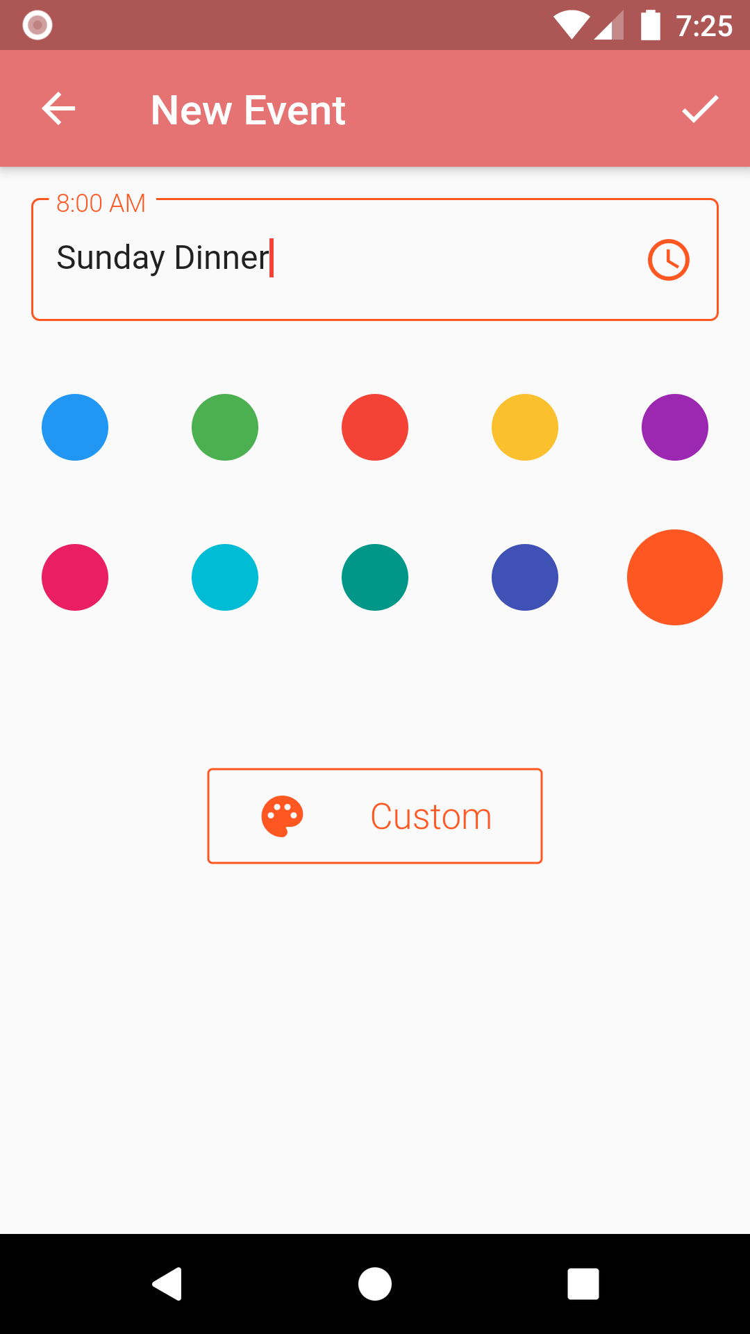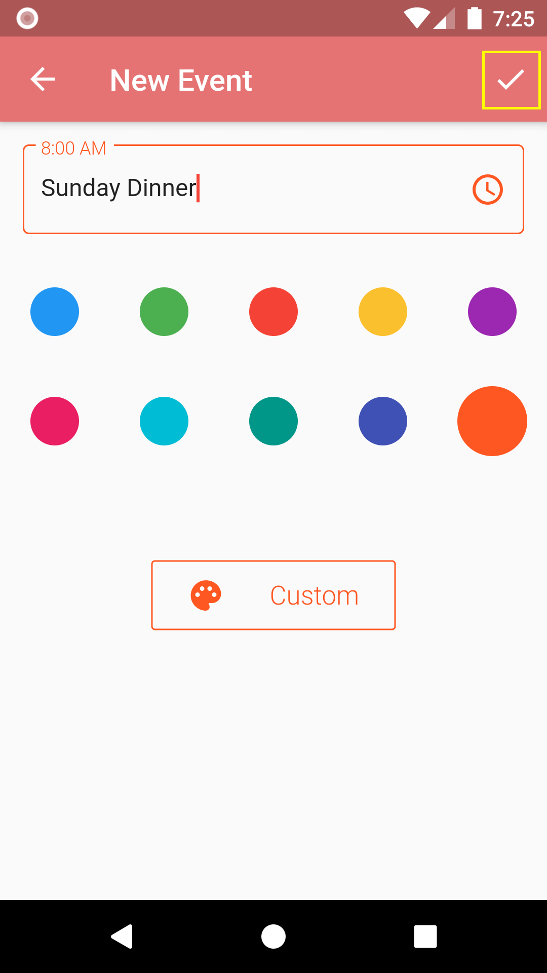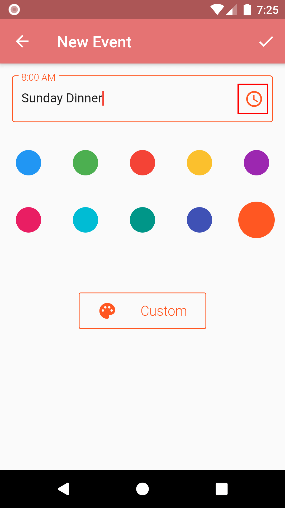 5. By default, events are set at 8:00 am. Tap the clock icon to change the time.