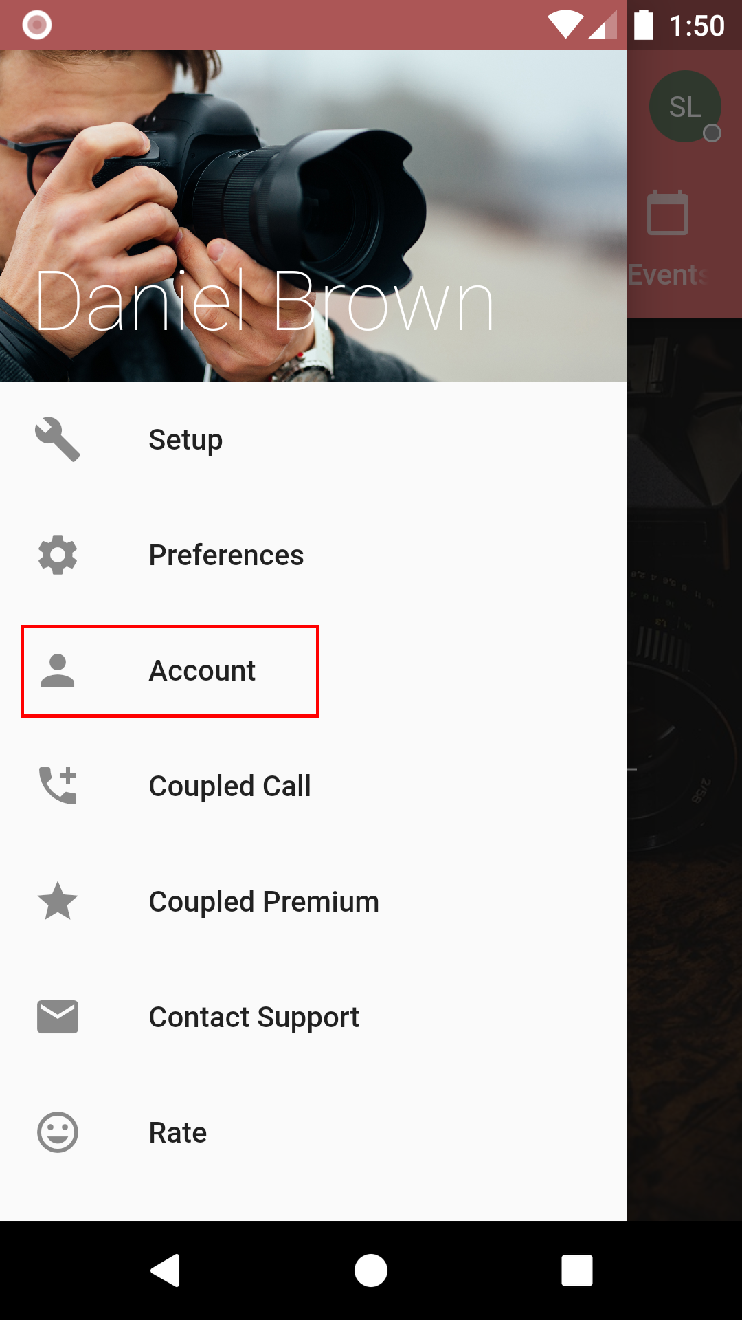 1. Tap the main menu button located on the top-left corner of the Coupled screen.