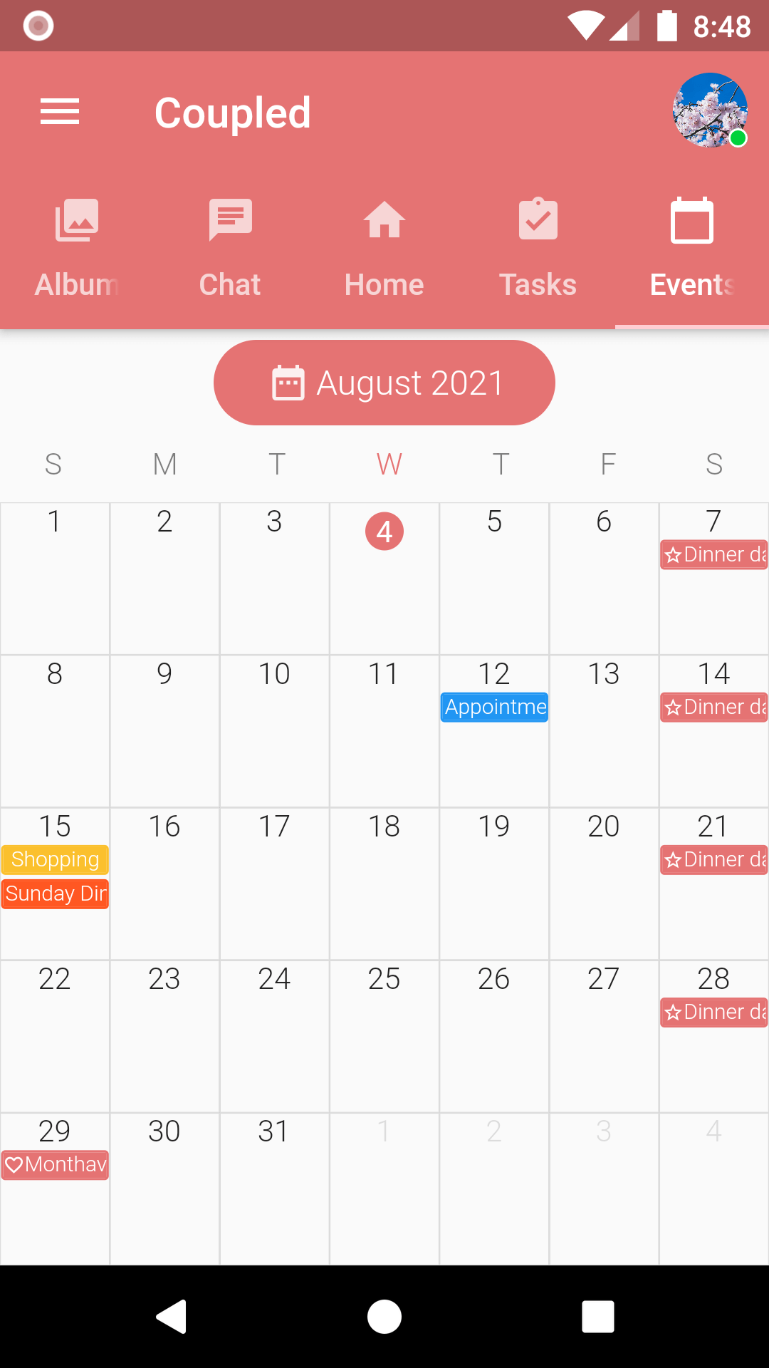 1. Tap the Events tab or slide the Coupled screen to go to Events.