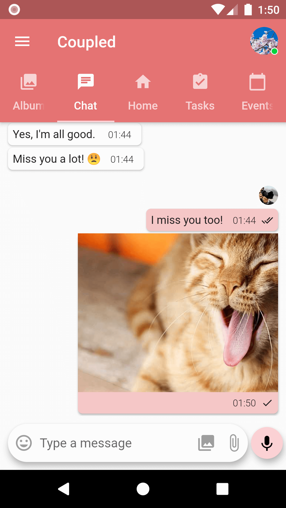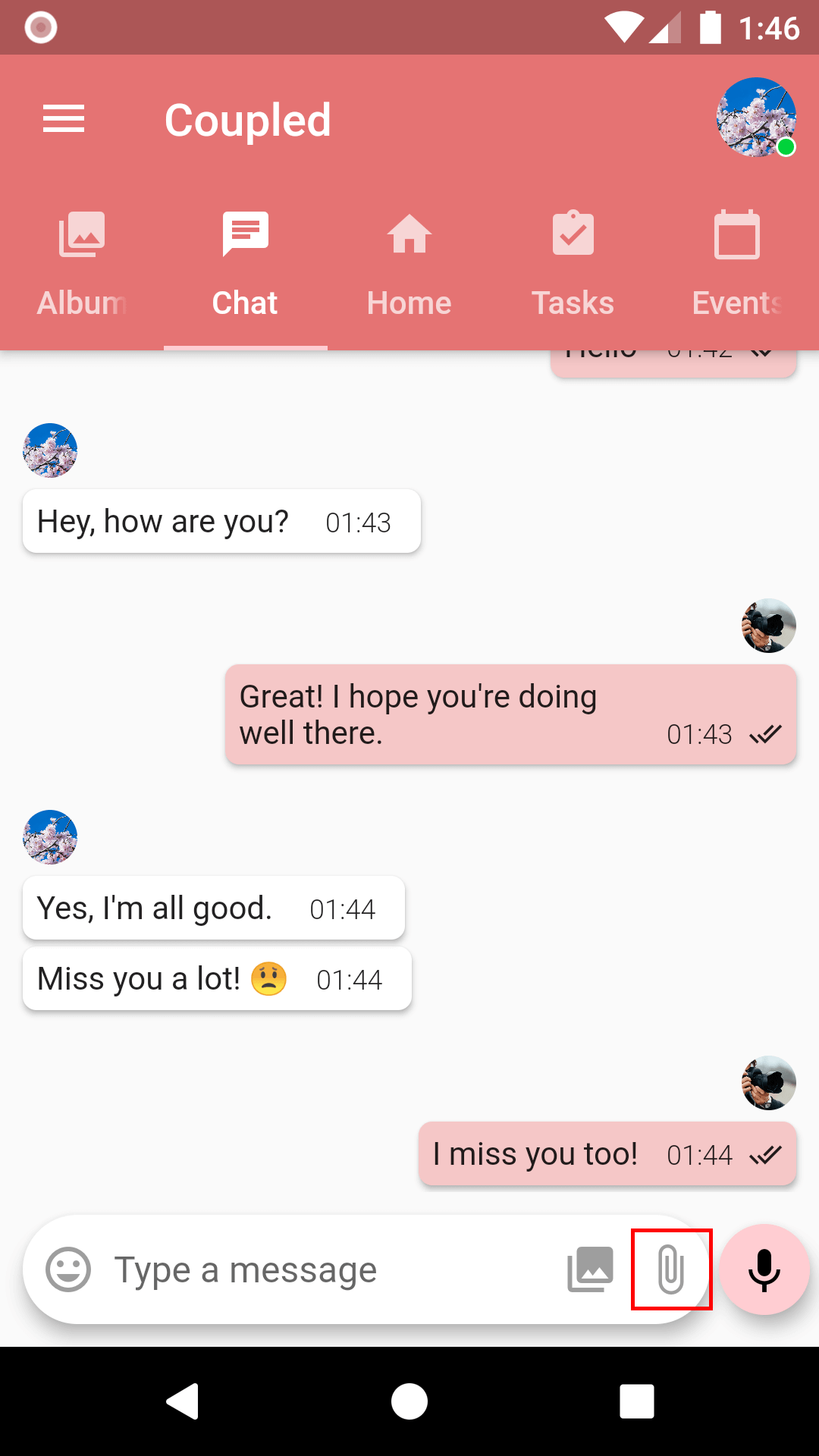 1. Tap the Chats tab or slide the Coupled screen to start using the chat feature.