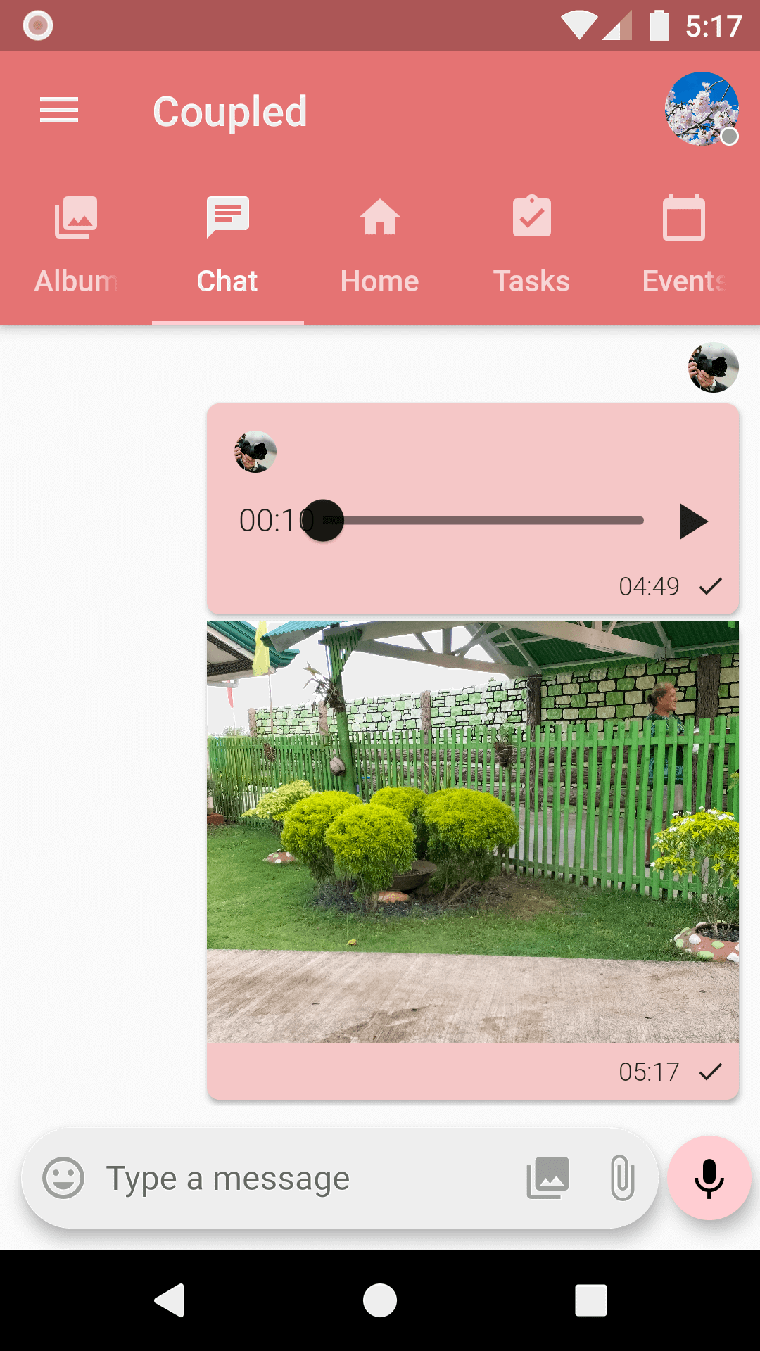 1. Tap the Chats tab or slide the Coupled screen to start using the chat feature.