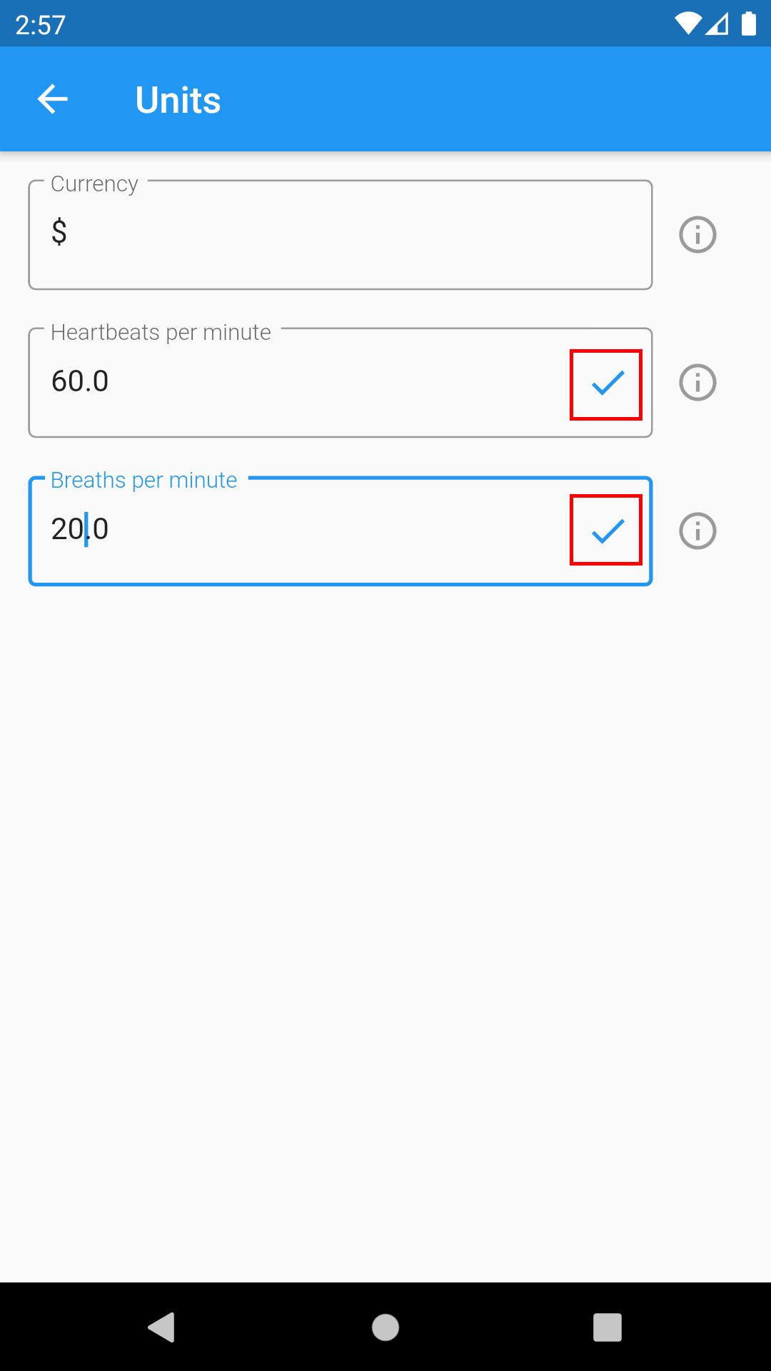 4. Enter your heartbeats per minute or Breaths per minute.