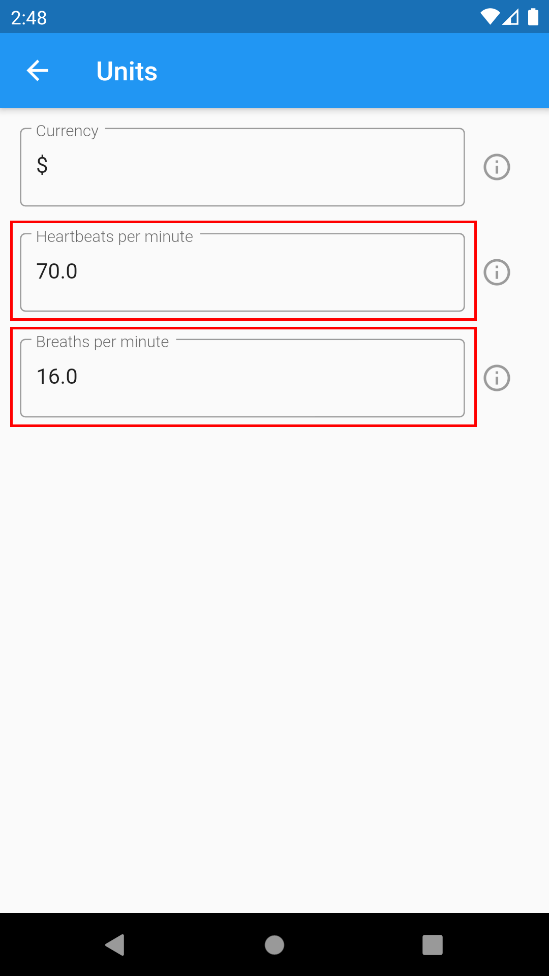 Everyone breathes at a different rate, and everyone's heart beats at a different rate. You can change Sober Time's average heart rate and average breath per minute to improve the accuracy of the Heartbeat or Breaths tracker modes.