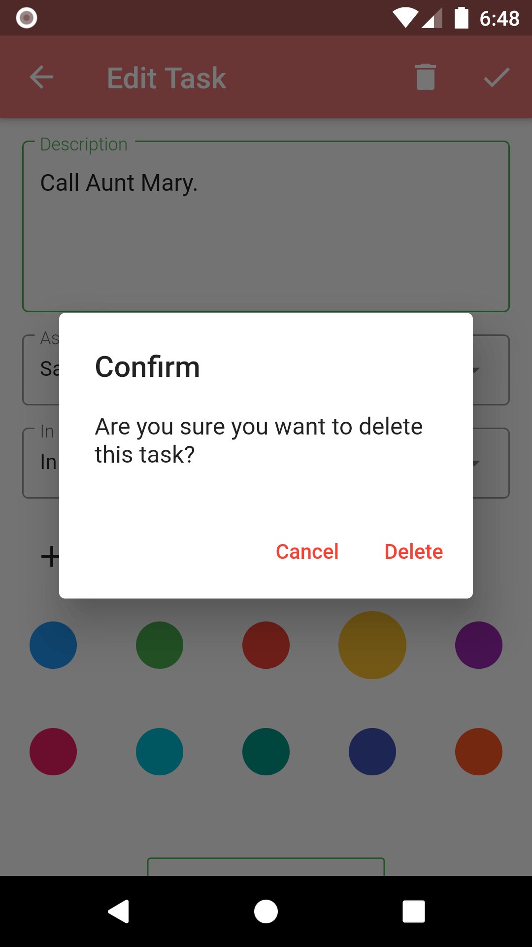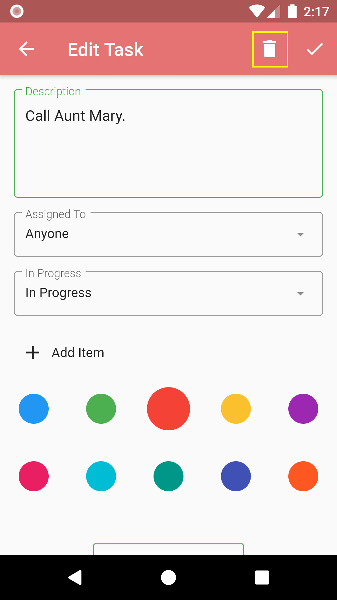 3. Tap the trash button located on the top-right corner of the page before the save button to delete the task.