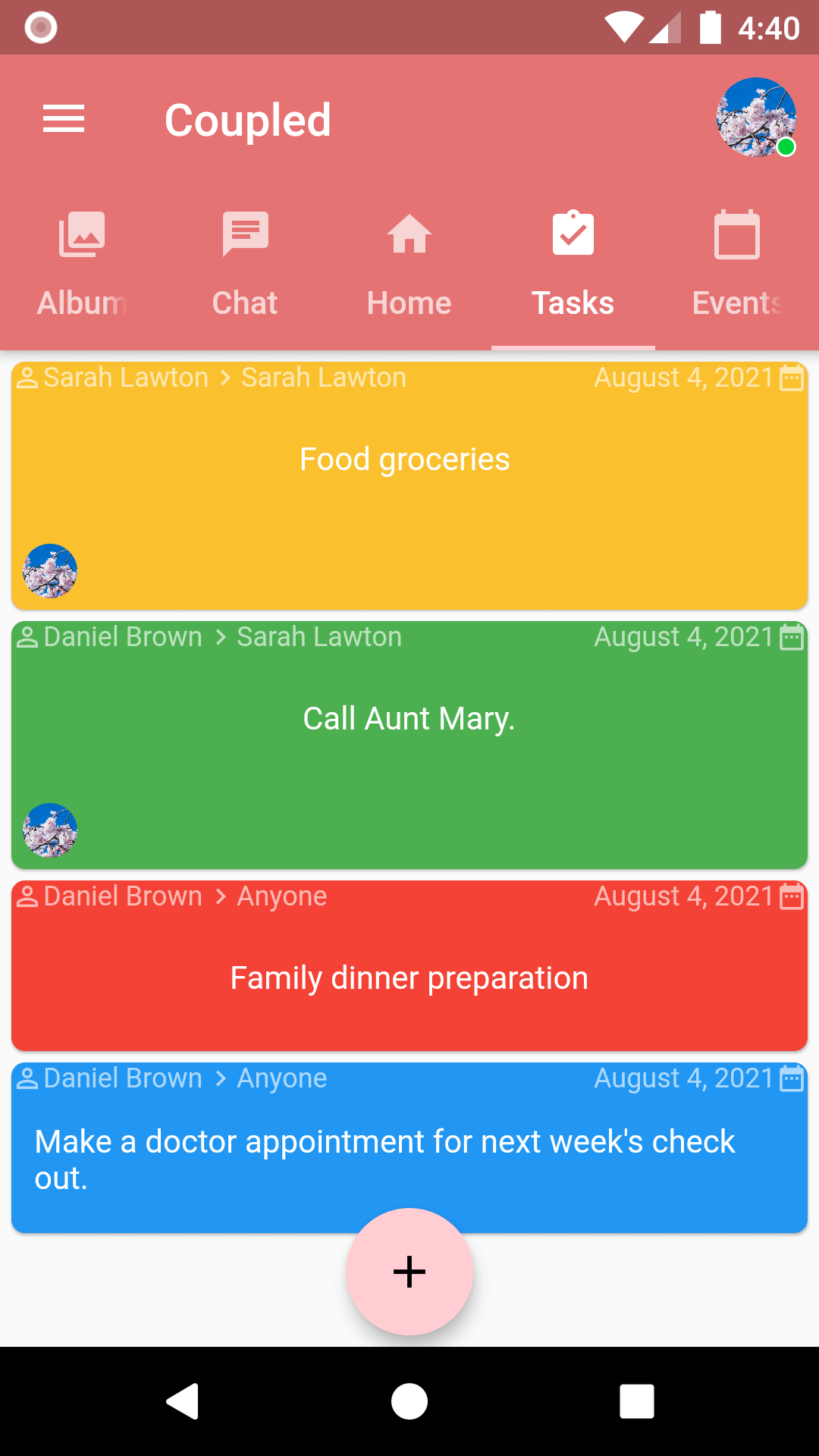 1. Tap the Tasks tab or slide the Coupled screen to go to Tasks.