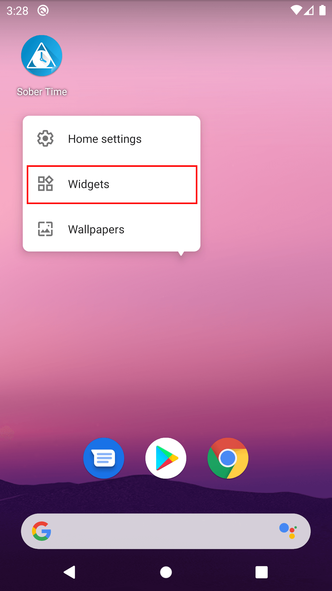 3. Look for Sober Time. Press and hold the Sober Time widget.