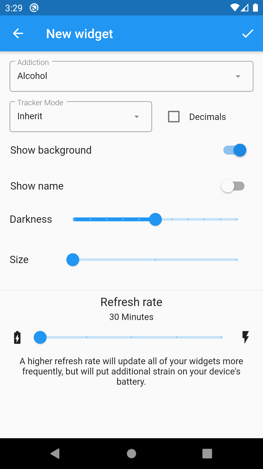 4. Drag and drop the widget into the available space. The Sober Time widget settings will appear. Here, you can customize the settings of your Sober Time widget.