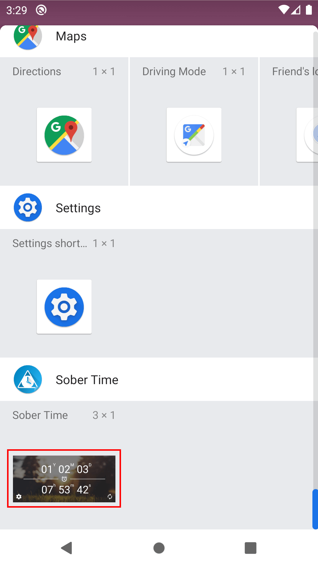 3. Look for the Sober Time widget and tap to select it.