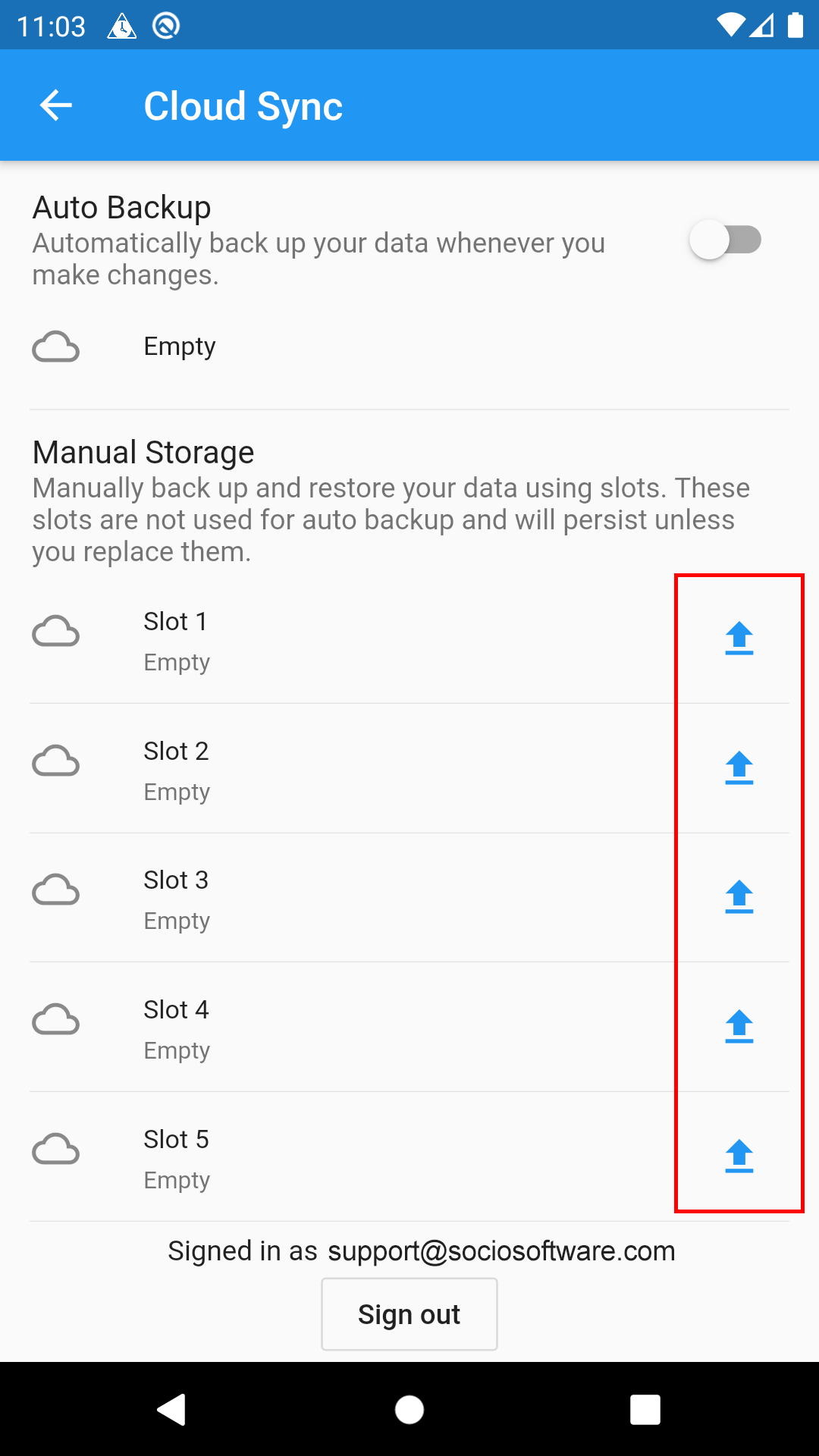 7. You can also save your data using the Cloud sync slots. These slots will allow you to save a specific set of data at a specific time.