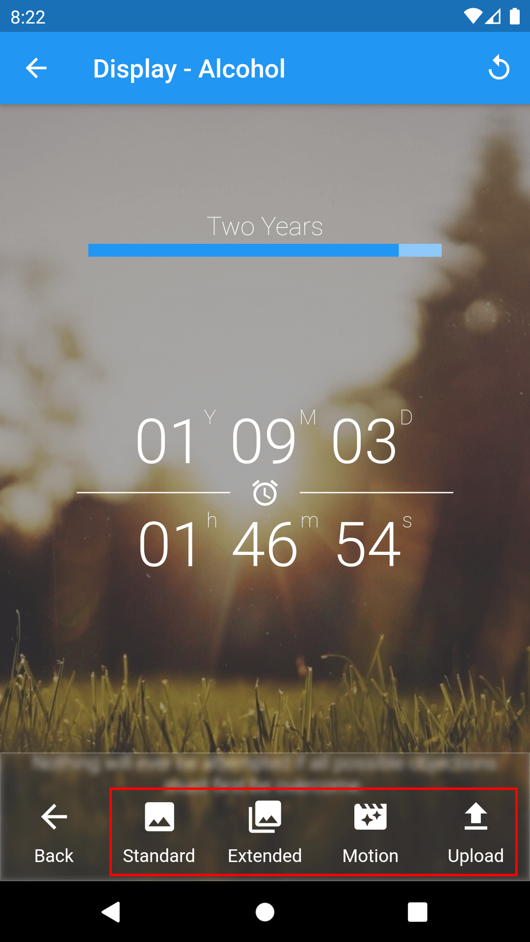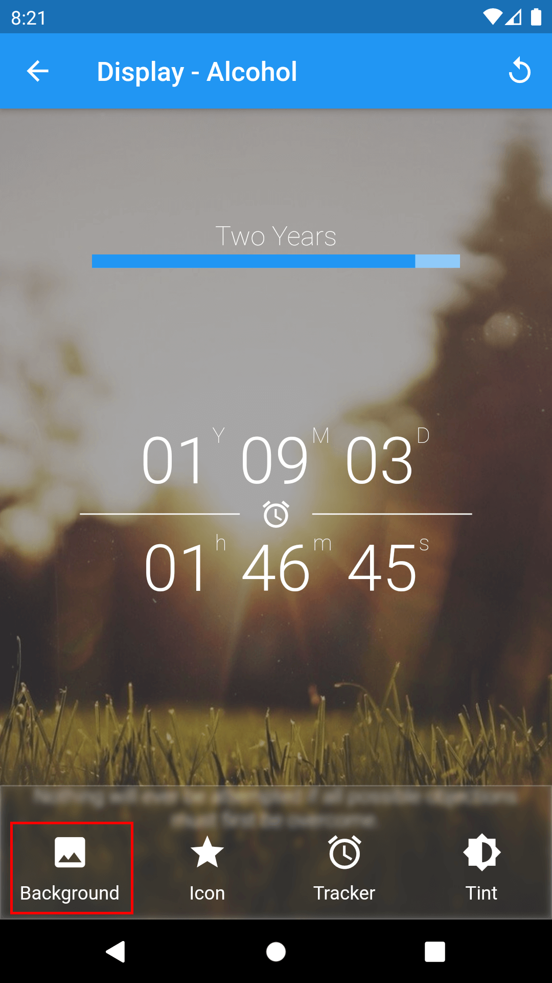 1. On the Home page of Sober Time, tap the addiction's bottom menu located at the bottom center.