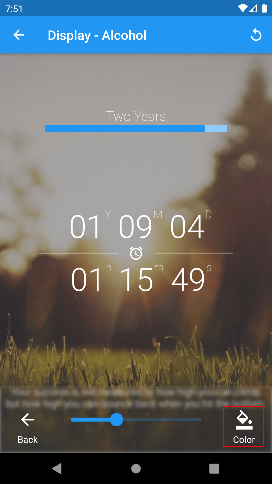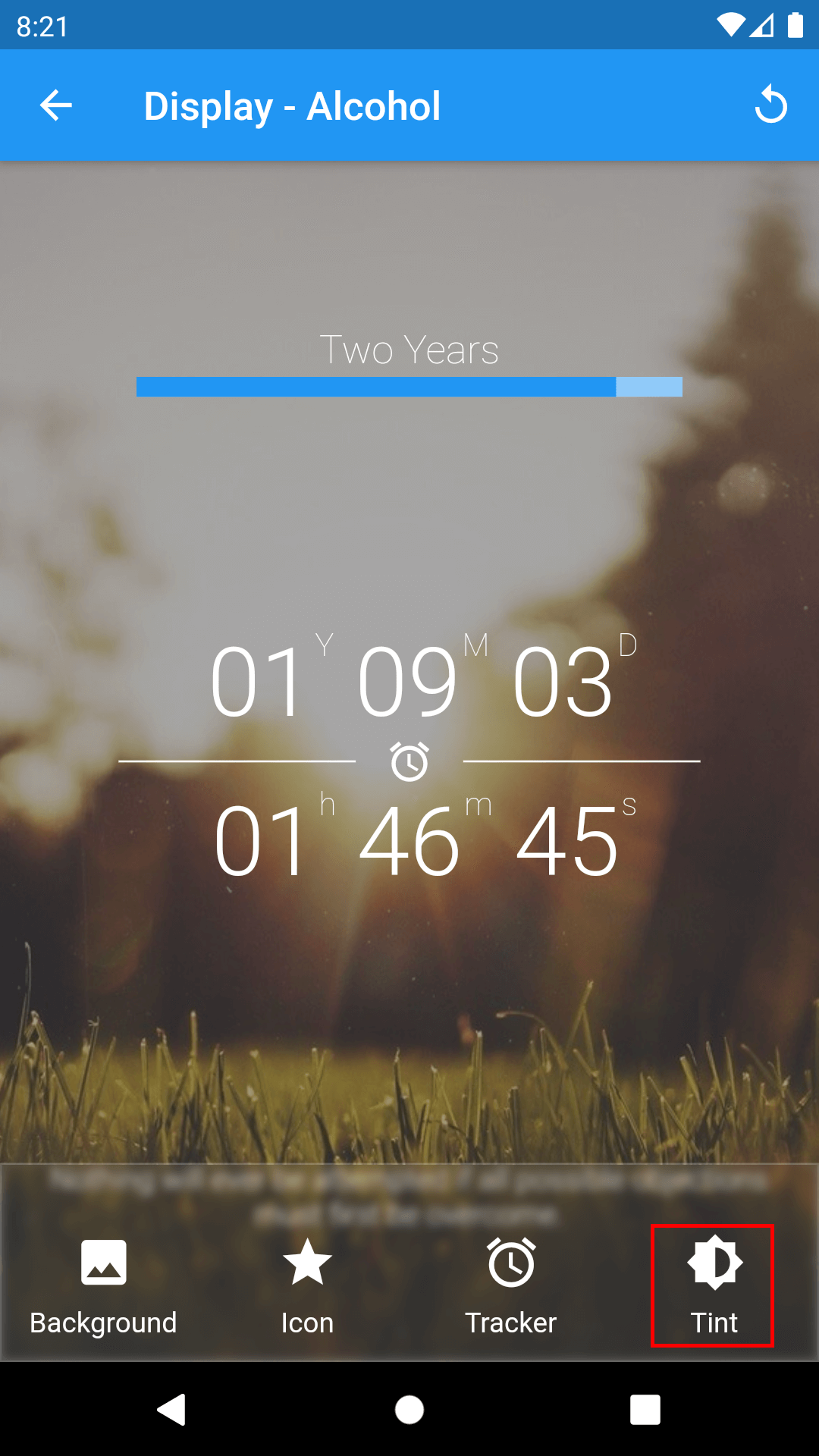 1. On the Home page of Sober Time, tap the addiction's bottom menu located at the bottom center.