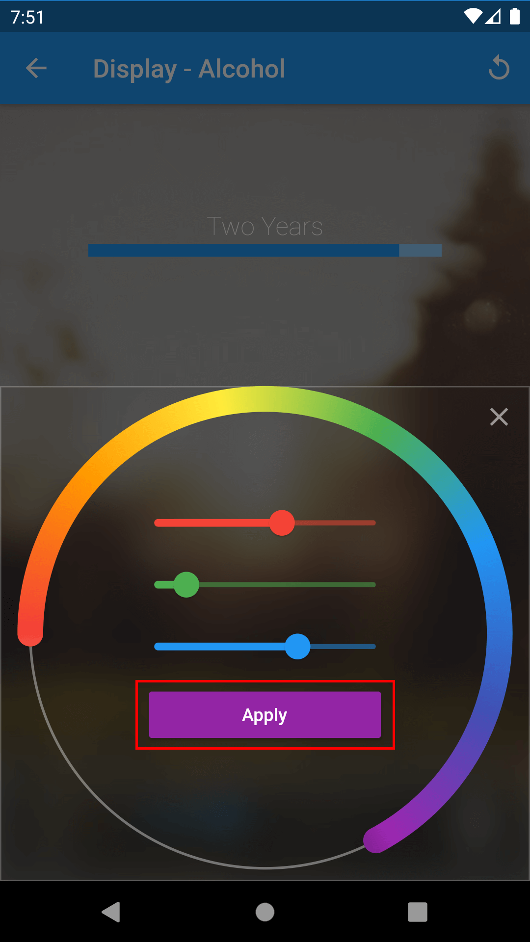 6. Choose the tint color of your liking using the slider, and tap Apply to save the changes.