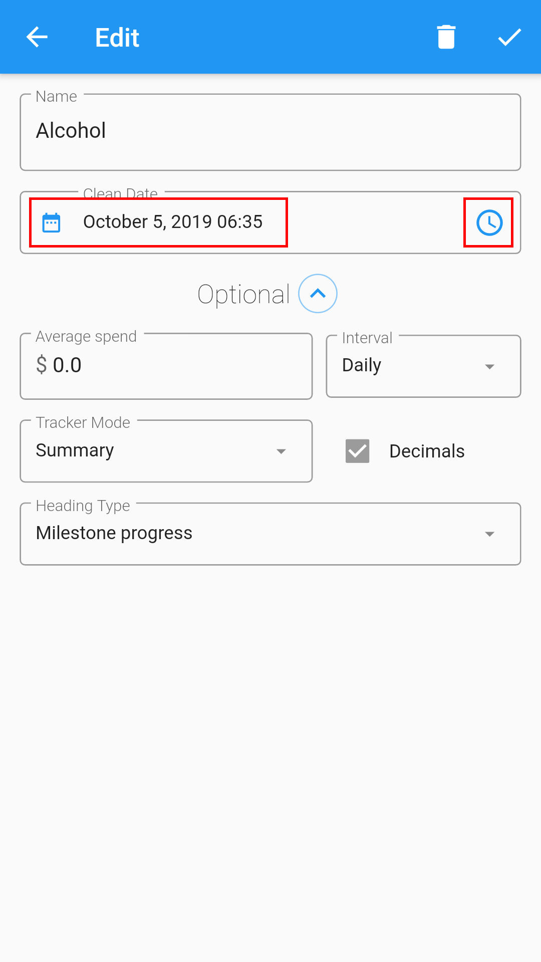 3. Change the clean date by tapping the Clean date field. To change the time, tap the clock icon to change the time.