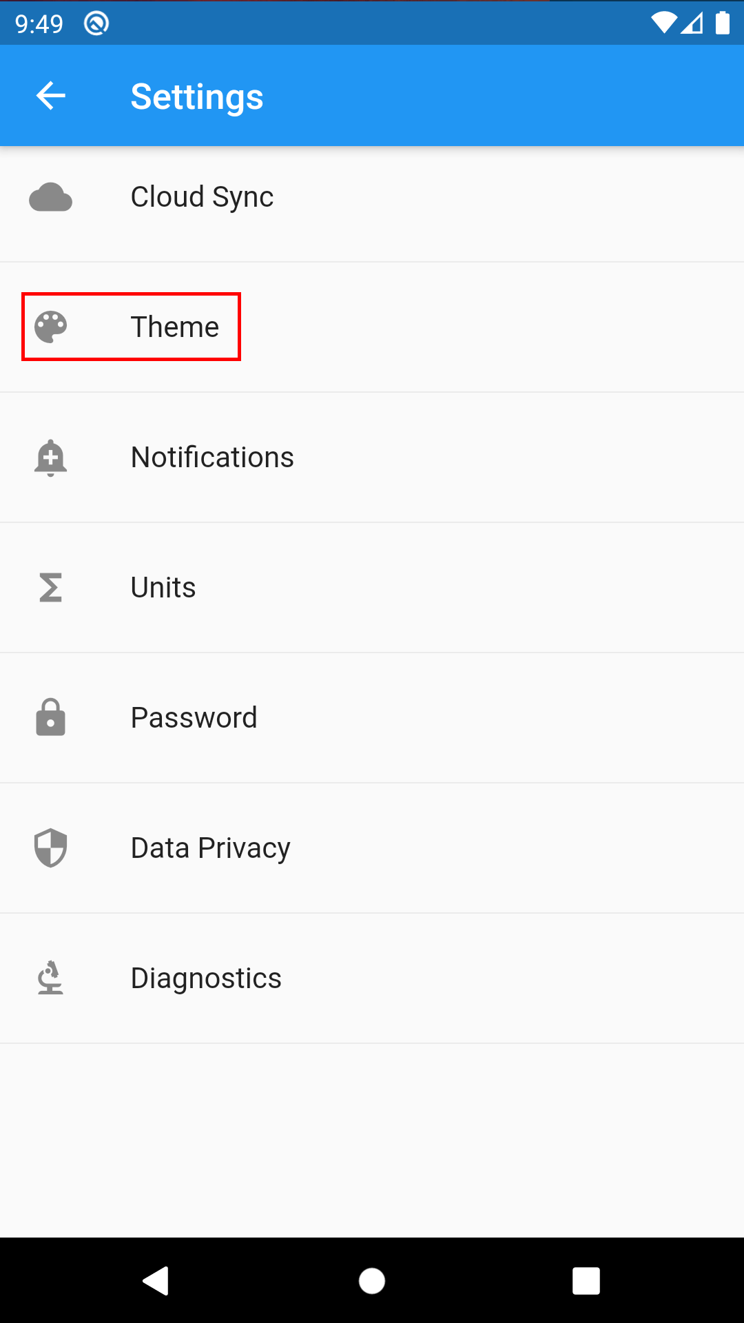 4. Browse through the themes by tapping the left and right navigation buttons.