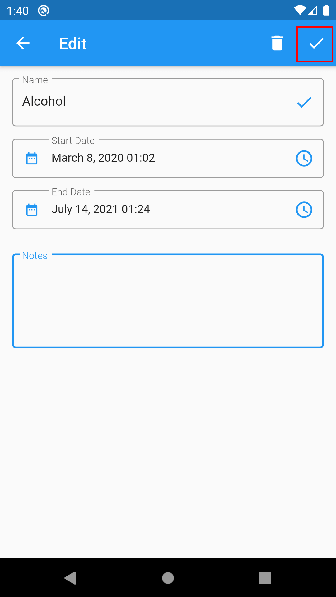 5. Tap the save button to save the changes.
