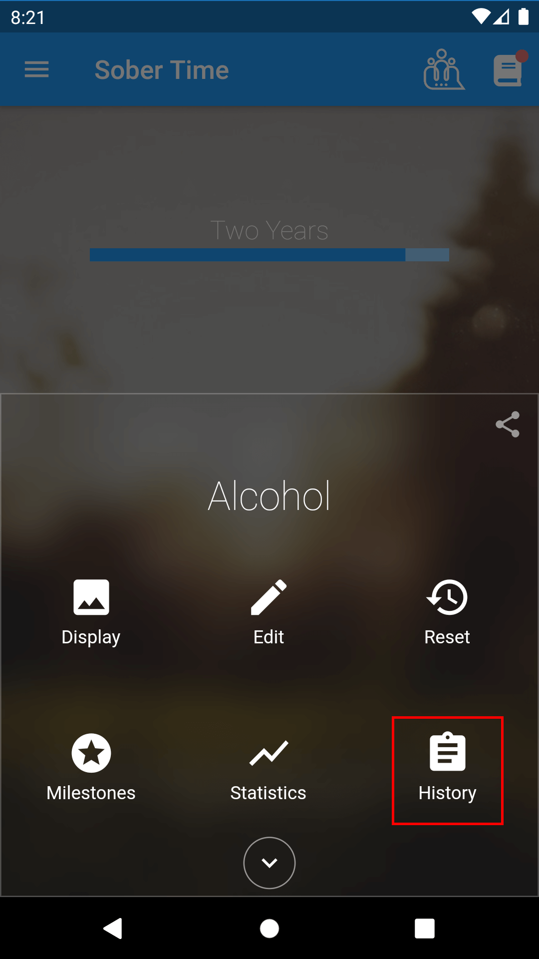 1. On the Home page, tap the addiction's bottom menu.