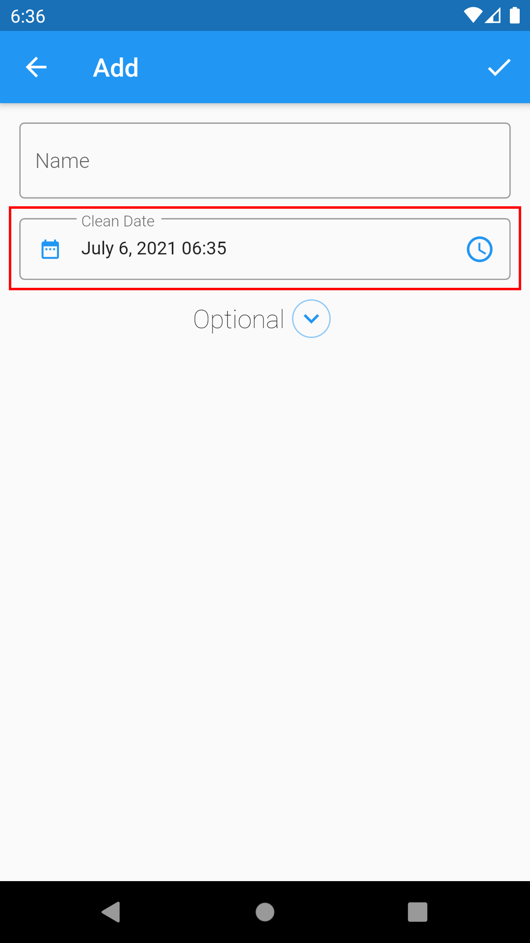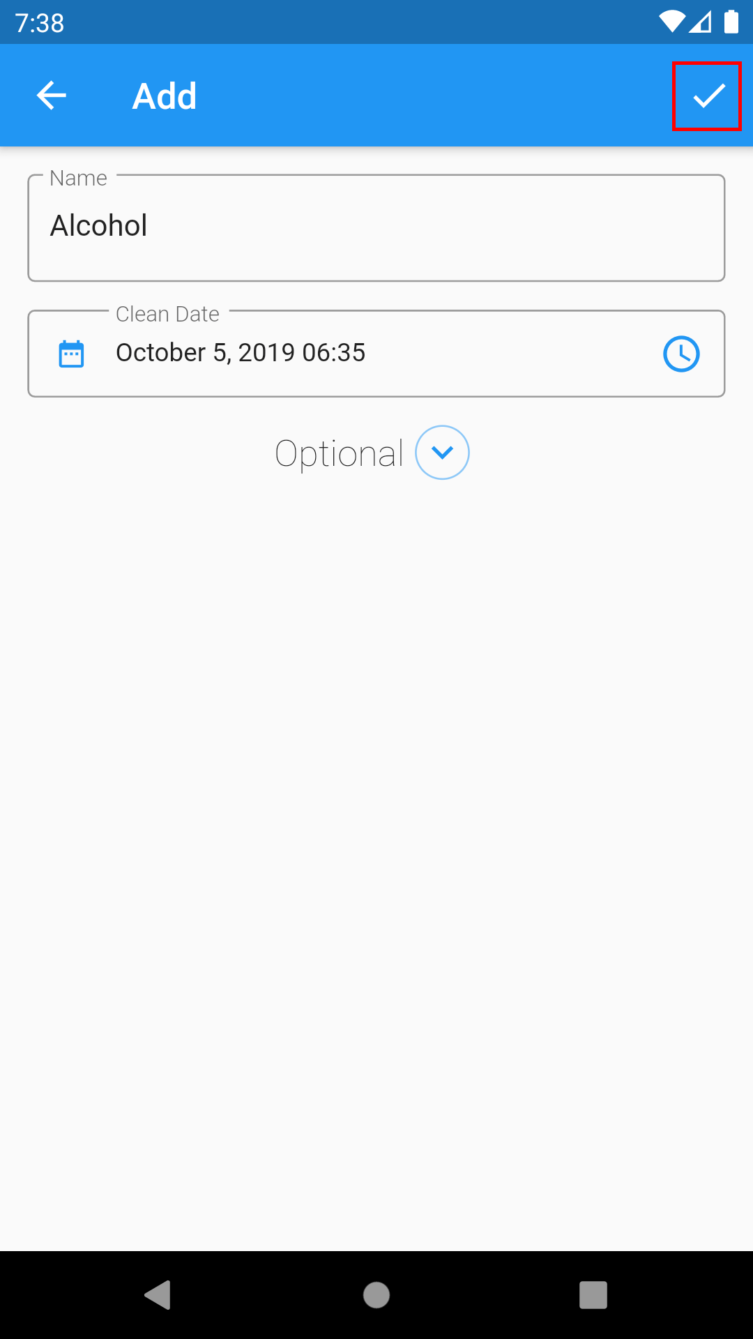 3. Enter your clean date and time. Tap the date icon to enter a date and the time icon to enter a time. The app will use this to calculate how long you've abstained from your addiction.