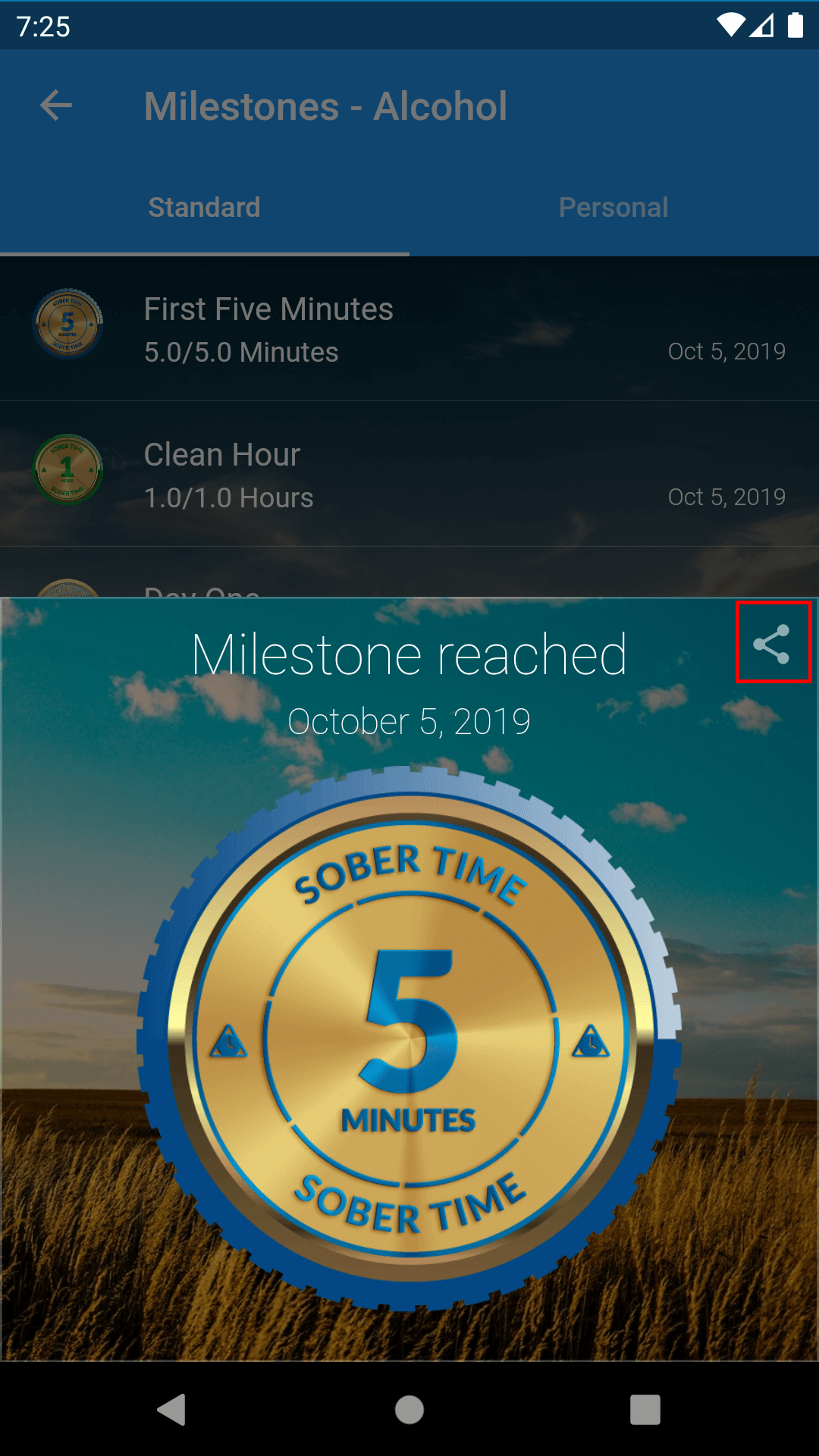 4. Tap the share button to share a milestone's badge.